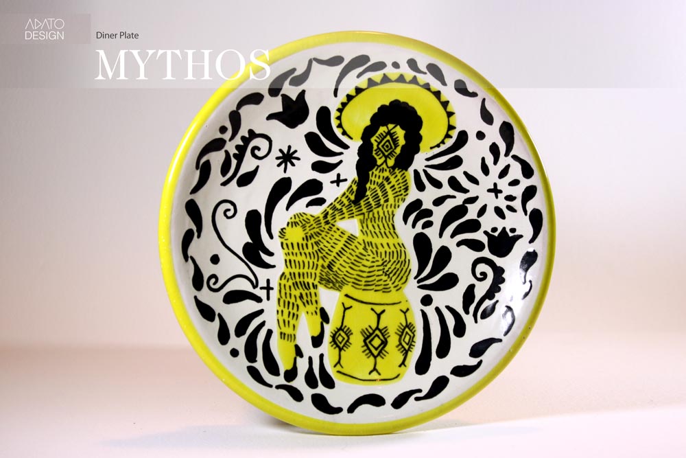 This series is inspired by Mexican stylizations of stories from pre-hispanic, colonial and modern times. Using the bright colors, folk imagery, and lyrical patterns and flourishes that characterize Mexican craft works, each piece is like a familiar story..